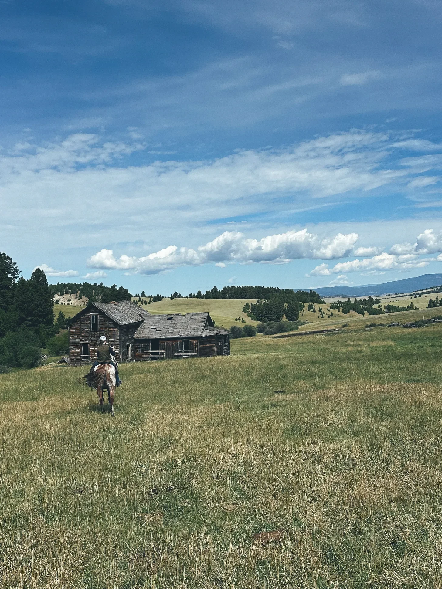 We all managed to catch the same flight out of LAX, and unsurprisingly the conversation revolved around horses and riding before we boarded; after all, horse girls rarely talk about much else. We were met at Bozeman airport by my badass wrangler friend, Pam, who in retirement enjoys spending her summers wrangling, riding, and essentially living THE life. Pam and I shared many deep conversations on horseback across these lands last summer, covering nearly every inch of that ranch, as my imagination ran wild over all the old homestead cabins scattered across the property. I'm surprised they let me back on the ranch to be honest, given how much I pestered everyone with history questions, but they’re amazing, welcoming folk and haven’t held it against me.